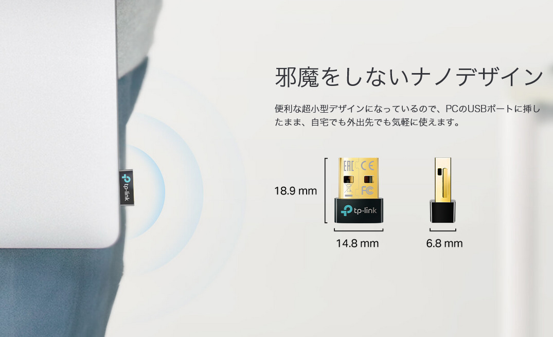 「TP-Link UB500」は、最新のBluetooth規格であるBluetooth 5.3を搭載し、より高速かつ安定した通信を可能にするモデルです。